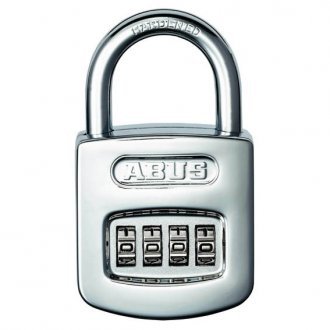 Abus combination padlock, with 50mm case. Chrome finish. High quality, precision padlock.