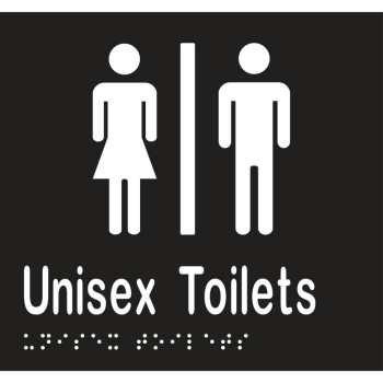 Unisex Toilets Divided Braille Sign in Designer Black Vinyl