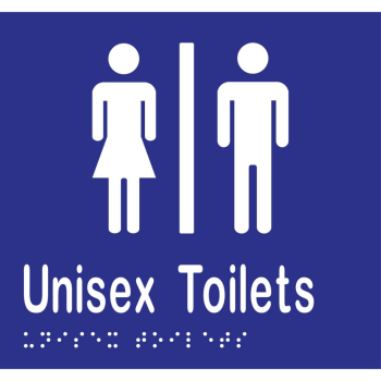 Unisex Toilets Divided Braille Sign in Blue Vinyl